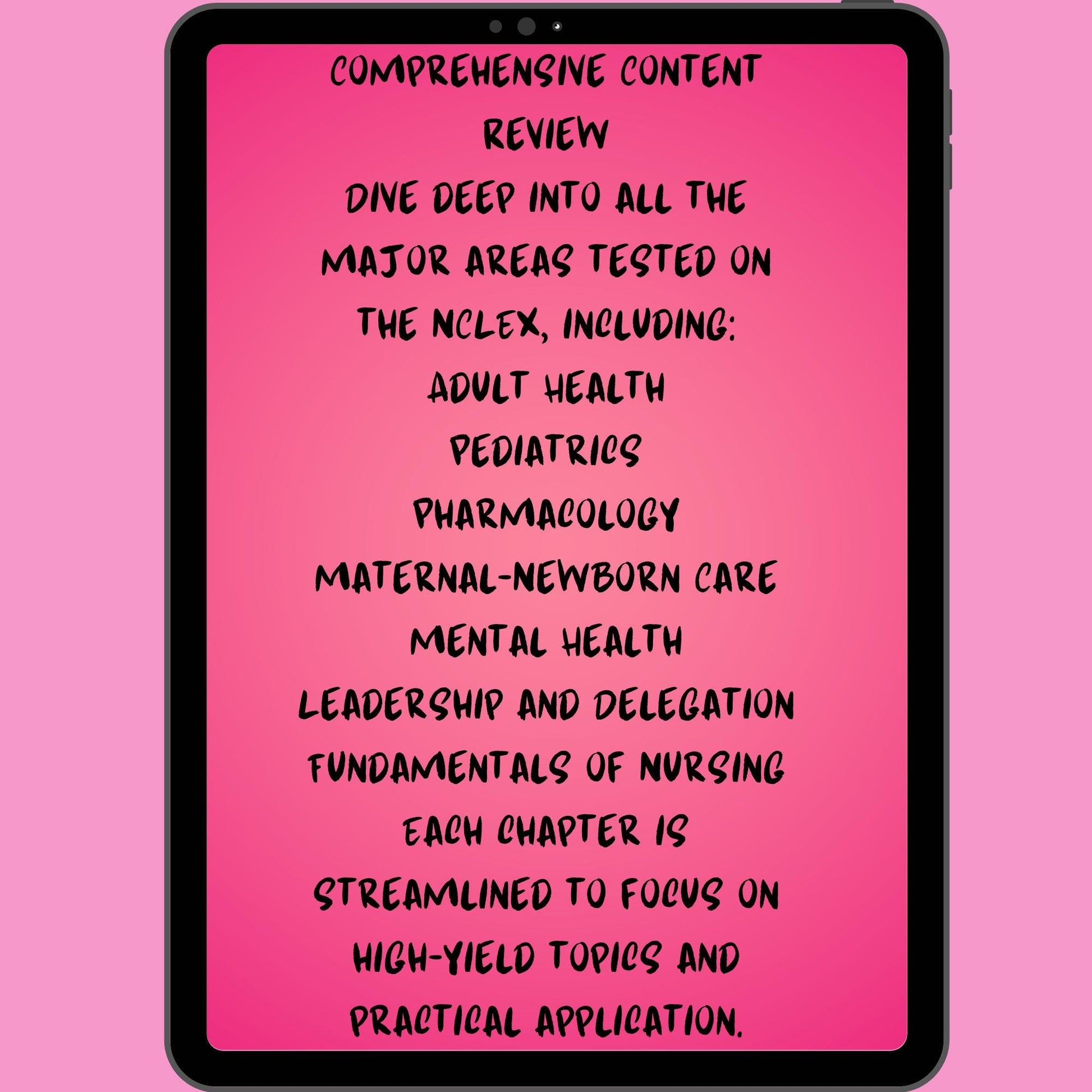 Streamlined Content: High-yield chapters that zero in on must-know adult health, pediatrics, pharmacology, mental health, and more—because your time is precious.